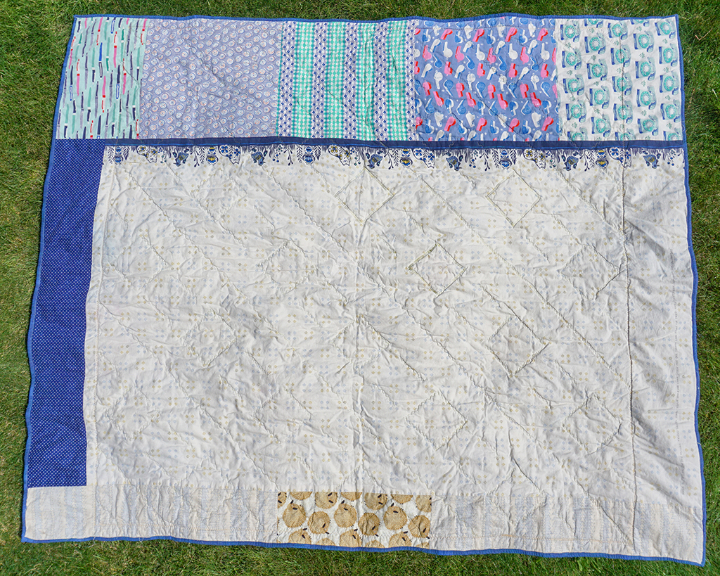 I made this quilt for my boyfriend. Take that, sweater curse! This was my first time really working with triangles that were supposed to end up a certain size. There are literal holes in the quilt top that I just sort of zigzagged over. It was really fun to look at compared to some of my more recent work, and see how much I have improved. It was also nice to think about how even though this quilt isn’t perfectly constructed, it still fulfills its utilitarian purpose and is well-loved.